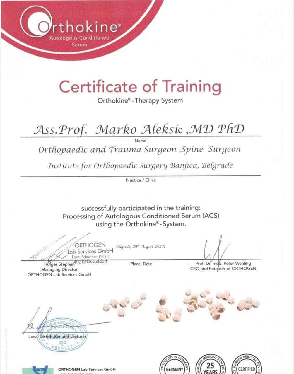 • Stručno usavršavanje iz oblasti hirurgije pedijatrijskih deformacija kičme uz upotrebu tehnike direktne bilateralne derotacije kičme Zimmer-Biomet Polaris sistemom, hirurgija kongenitalne skolioze kao i hirurgije degenerativnih stanja kičmenog stuba uz kombinovanu transpedikularnu i „TLIF“ fuziju.  „Pediatric spine deformity surgery – „Fusion with direct derotation using Zimmer-Biomet Polaris system, congenital scoliosis surgery and degenerative conditions of lumbar spine – combined transpedicular/TLIF fuisons“ mentor Prof. dr Martin Repko „Maserik University Hospital“, Brno, Češka republika. 22.-24. Oktobar 2018.