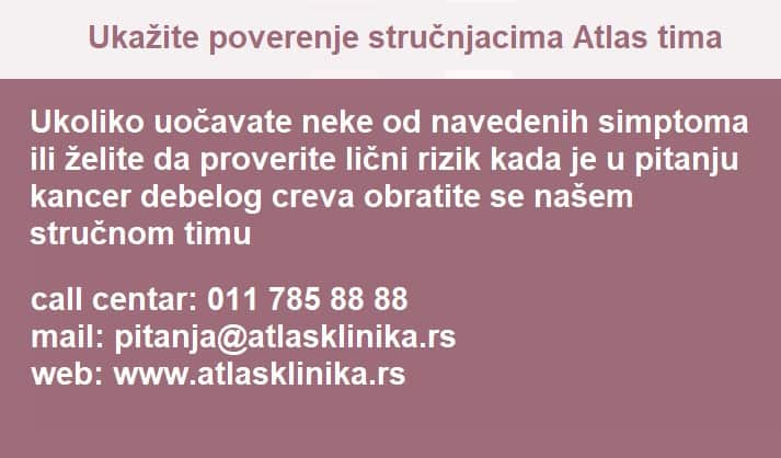 Many of the symptoms can help you, and they can be sign of dangerous diseases. Cancer discovery in the early phases can save your life, so it is important to be informed and recognize the signs and symptoms of colorectal cancer. If you have some of these symptoms or wish to know more about your personal risk of developing colon cancer, you can call Atlas general hospital and our surgical team that is expert in colorectal surgery.
