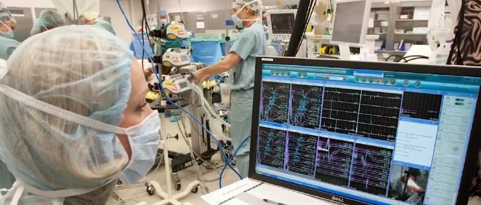 • Use of apparatus for intraoperative monitoring of important brain functions and recognition of very important nerve structures in the surgical zone, and above all of the cranial nerves
